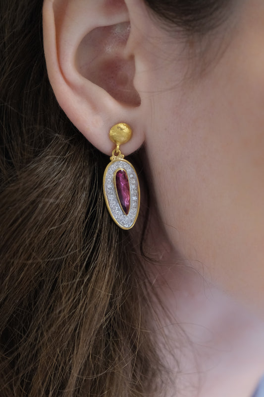 Pink Tourmaline & Diamond Earrings