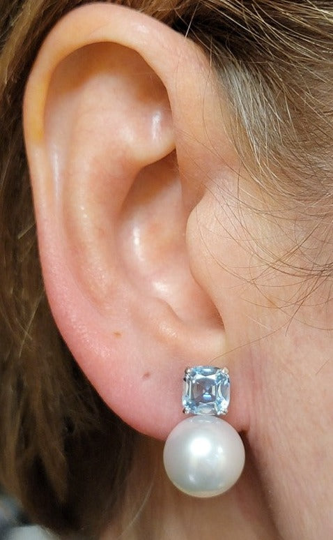 South Sea Pearl & Aquamarine Earrings